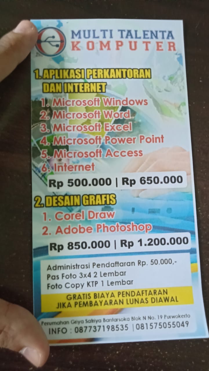 Pusat kursus komputer, bahasa, internet dan bisnis. Toko komputer di purwokerto yang bagus aksesoris sparepart perlengkapan bekas servis jual nama beli pwt murah daftar els laptop terlengkap lengkap no telp. Lkp multi talenta komputer purwokerto merupakan lembaga kursus dan pelatihan (lkp) yang memiliki izin resmi dari dinas pendidikan kabupaten banyumas denga nomor 421.9/259/2018 dan terdaftar di kemdikbud. Kursus komputer jemput bola melayani : Lkp multi talenta komputer merupakan salah satu lembaga kursus dan pelatihan di kota untuk bidang komputer.